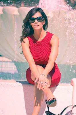 Denise Milani - Red Dress by the Fountain